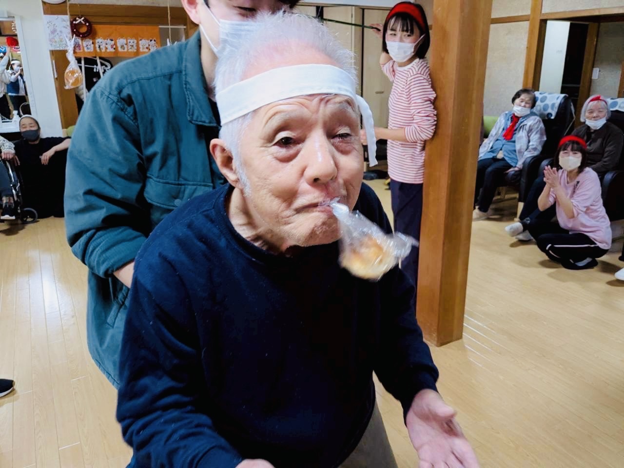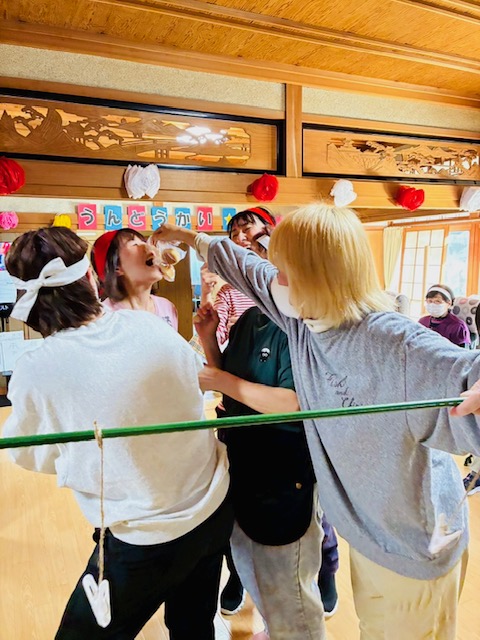 パン食い競争はもう、利用者様だけでなくスタッフも大盛り上がり🤤