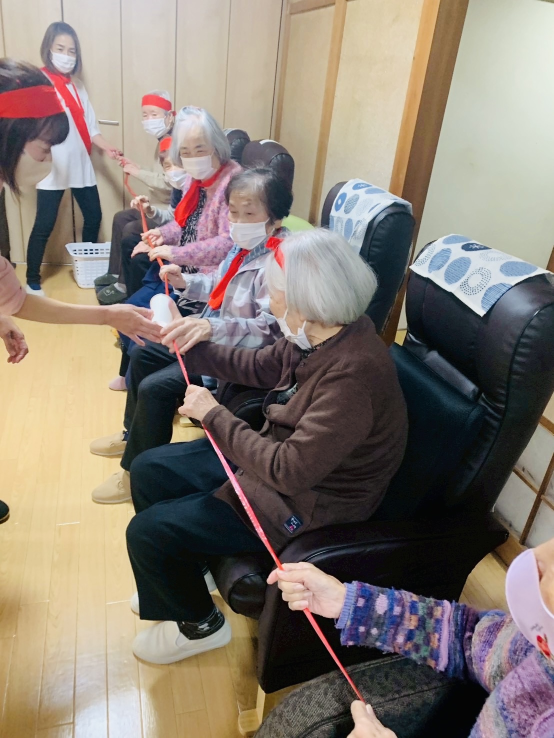 紐送りは、利用者様だけで参加してもらいましたが、みなさん一生懸命で上手にできていました!さすがです👏
