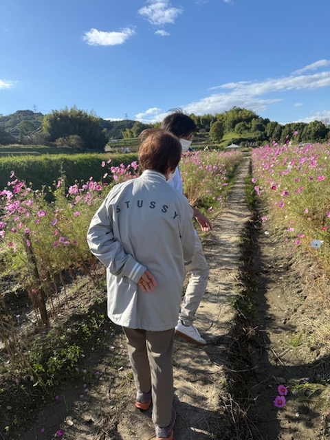 皆さん、コスモスを摘むのも咲きすぎてなくて、蕾の多いもの等々色々考えながら摘まれていました。