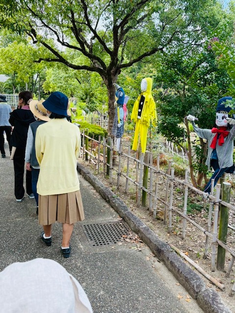かかしが沢山いたり、ハロウィン仕様の背景で写真を撮ったり…